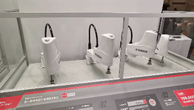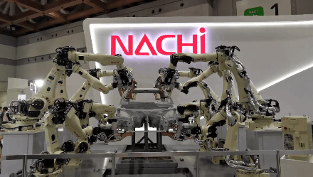那智不二越干脆运来了汽车自动化焊接的整套机械臂,展示了这一机器人最成熟应用方向的工业美学。